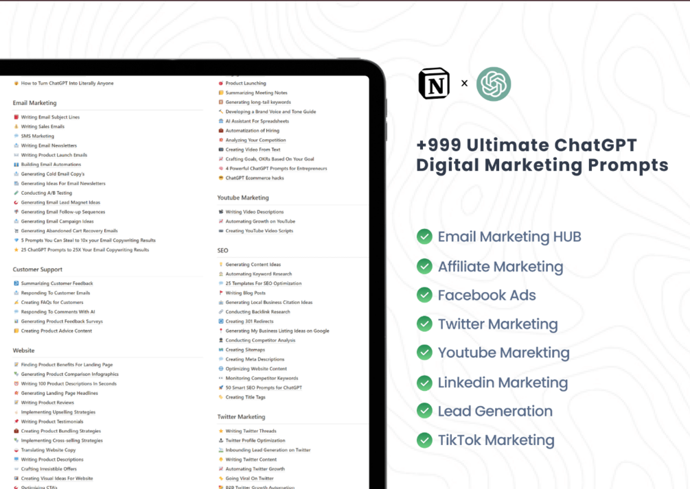 Say goodbye to content creation blocks with our Digital Marketing Prompts Guide. With over 999 prompts for Twitter, LinkedIn, and affiliate marketing, you’ll have fresh ideas for engaging posts, impactful ads, and brand-building content. Tailored to boost engagement and save time, this guide helps you keep your content relevant and powerful.