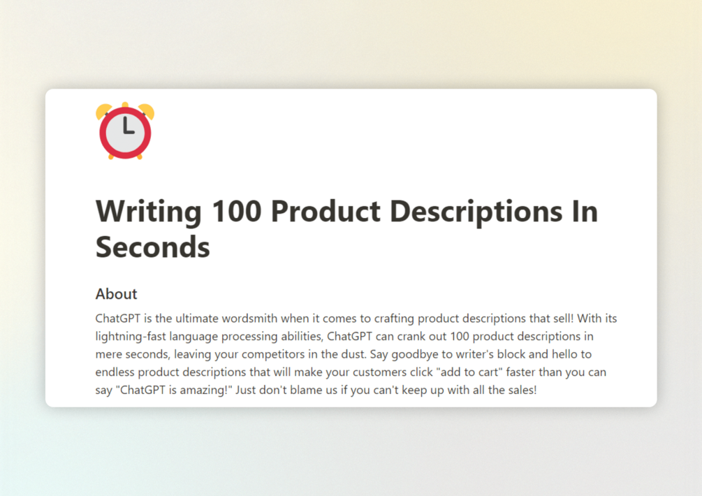 Each prompt has been hand-selected by ChatGPT, a language model trained on the latest and greatest in natural language processing. With ChatGPT as your guide, you can be sure that you're getting the very best prompts to help you create content that drives engagement, builds your brand, and grows your business.